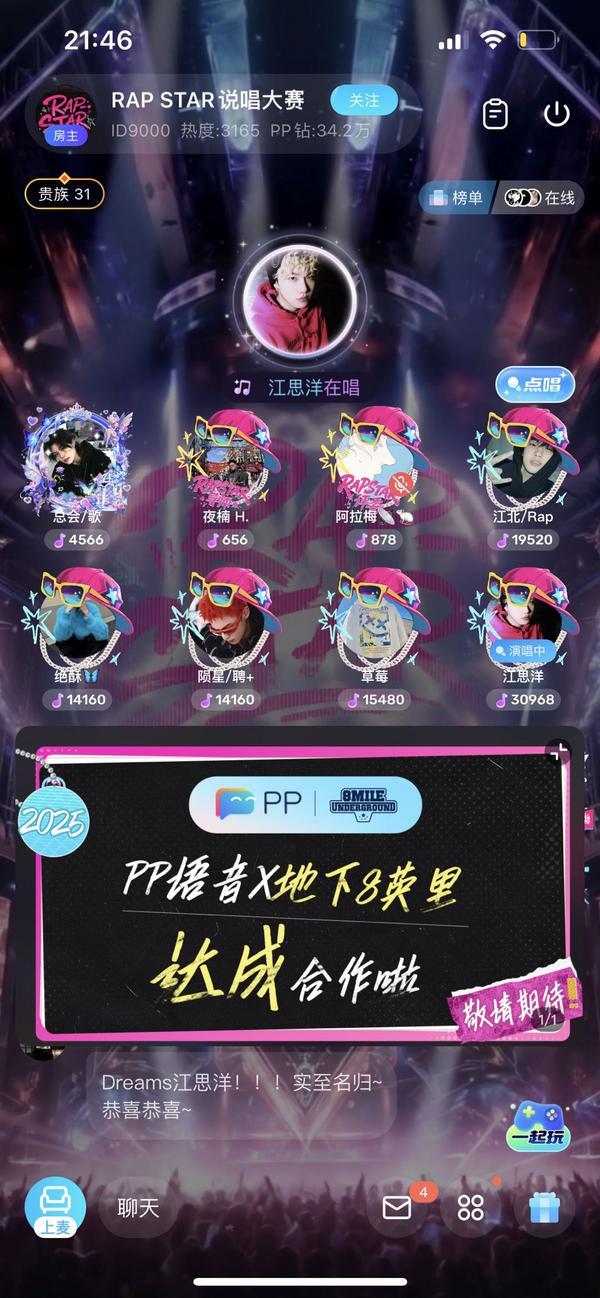 “在 PP 语音,我从一个酒吧驻唱歌手成长为拥有 10 万粉丝的签约主播,月收入提升 5 倍。”参加RAP Star 说唱大赛选手阿哲在采访中分享道,“平台不仅提供曝光机会,更有专业团队指导音乐创作和运营,让我真正把爱好变成了职业。”