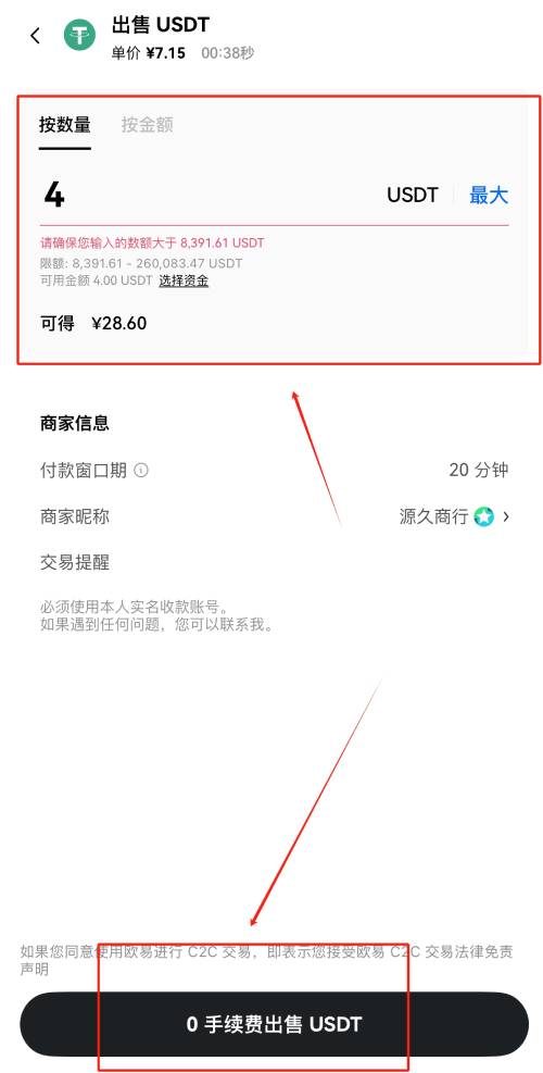 5.在出售详情页面,输入想要出售的USDT数量,点击【出售USDT】就完成了