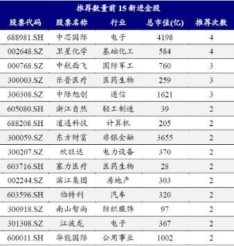 而在7月新进金股名单(相对于6月新进金股名单中,中芯**(688981、卫星化学(002648合计被推荐次数**,均达到了4次。