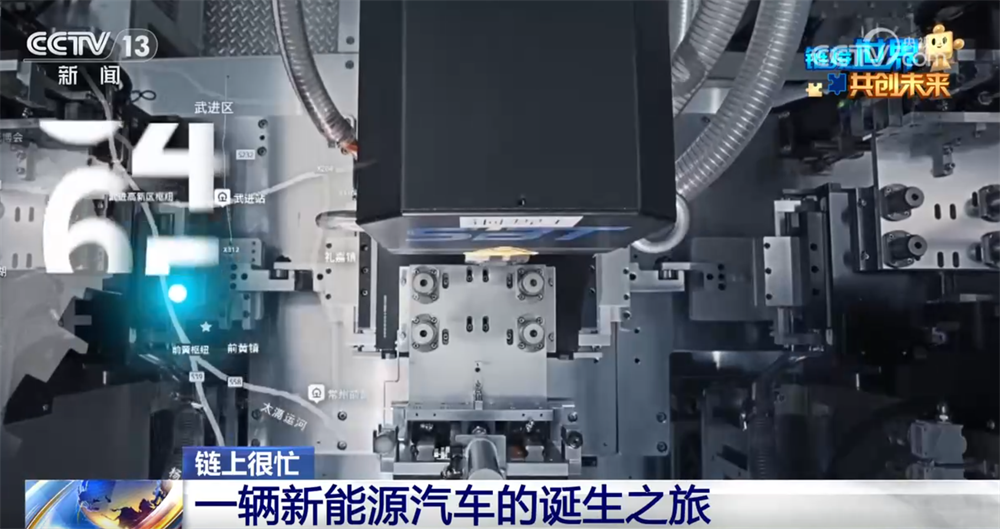 所以,这上万个零部件如何快速聚齐,变成一辆整车呢?答案就藏在一条**运转、争分夺秒的“超级产业链”上。在长三角,通过产业集群协同发展,一家新能源汽车整车厂可以在4小时内解决所需配套零部件供应,形成了一个新能源汽车“4小时产业圈”。 接下来,我们去江苏常州的一家整车工厂,看看生产一辆新能源汽车的4小时“旅程”。