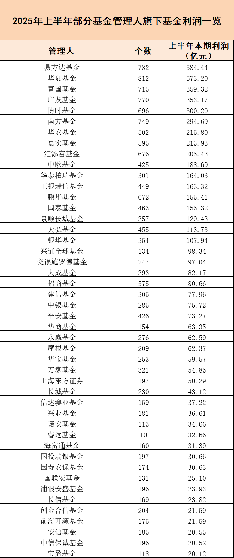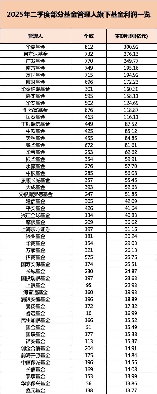 随着2025年基金二季报披露完毕,公募基金**盈利情况出炉。