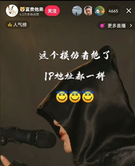 一个名叫“富贵他弟”的博主,从头像到名称,再到间的穿着,都**像富贵,引来几十万人观看。