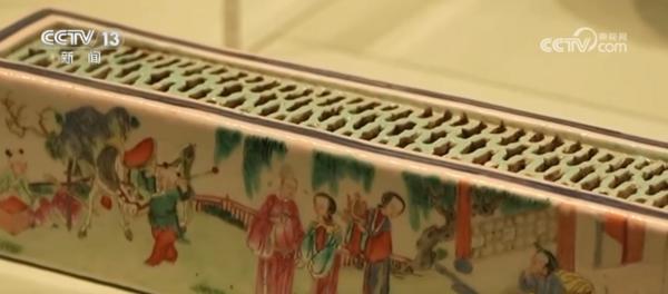 博物馆讲解员介绍,这个蟋蟀筒,里面是装蟋蟀的,这件文物的全称它是青花粉彩人物镂空龙纹蟋蟀筒,斗蟋蟀也是古代流行的一种民间娱乐活动。