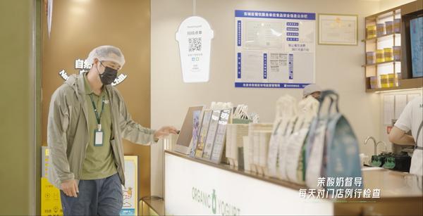 视频中,直观地展示了:门店店员与店长构成首道防线的守关人,承担着 “日管控” 职责。从资质证照公示到操作台**,从健康证核验到原料效期排查,10 个维度的日常巡检,让每个操作环节都有规可循。督导团队的 “周排查” 则形成第二重保障,每周定期到店,对卫生整洁度、设备运行状态、员工操作技能、产品配方执行等进行全方位巡查,将潜在风险及时**。公司高层则针对食安**问题,进行整体资源的“月调度”排查和整改。
