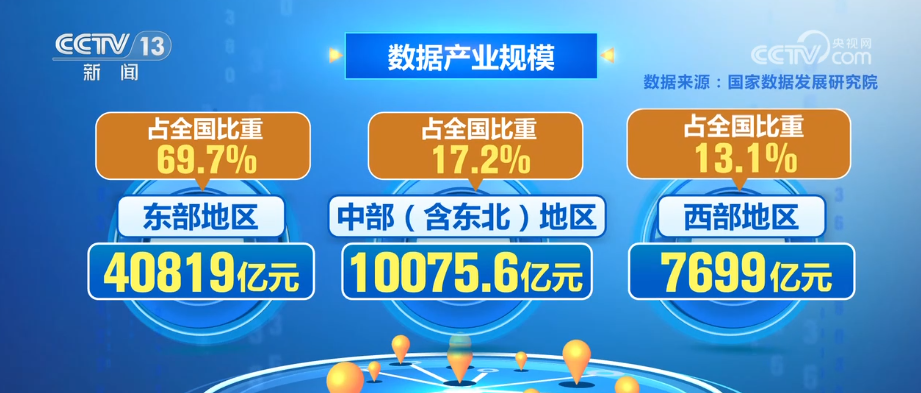 数据产业这一新兴产业,在产业分布上又呈现什么样的特点?**测算显示,东部地区产业规模占大头,占**比重近七成。