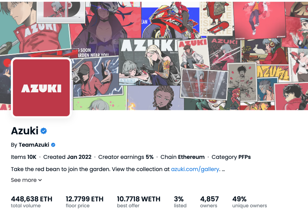 Azuki是一个基于以太坊区块链的NFT项目。Azuki的NFT是通过生成式艺术创建的,因此每个NFT都是独一无二的。Azuki的NFT被认为是非常有价值的数字收藏品,因为它们的数量有限且独特。持有Azuki的NFT的人可以获得许多特权,例如获得社区成员的身份、**活动和社交聚会的邀请等。
