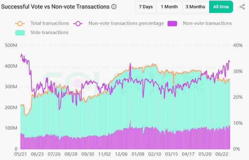 Solana的总交易量在下降,但用户驱动的交易在上升。来源:Solscan