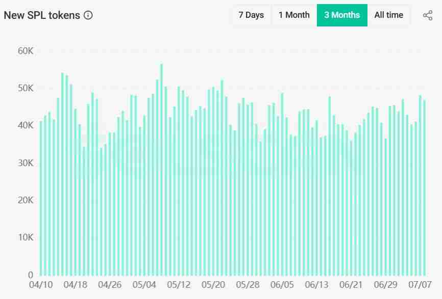 乍看之下,Solana的整体网络活动表明迷因币领域更多是在重组而非扩张。网络上的**发行总量保持稳定,每日交易量呈下降趋势,而新账户创建数量仅为4月峰值时的一半左右。