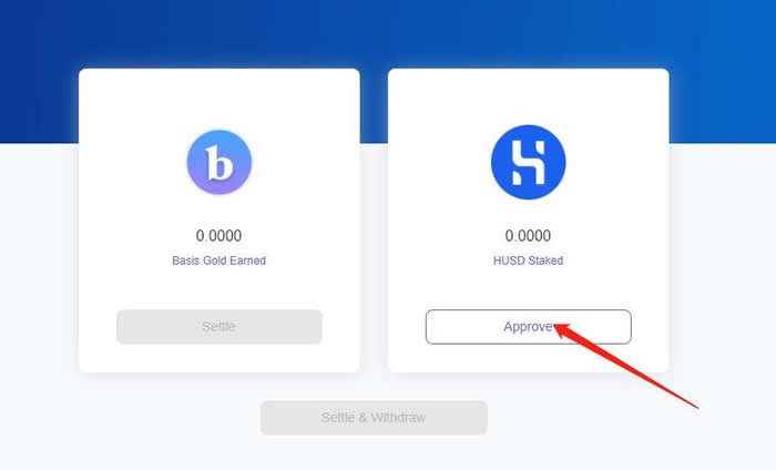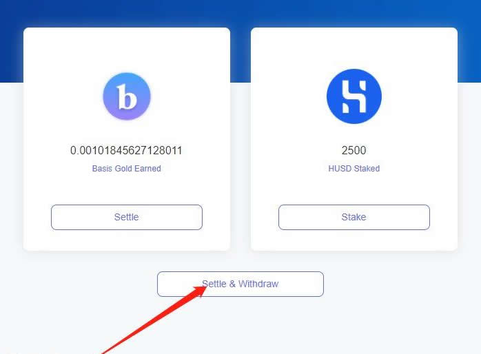 然后,你就完成了单币种的stake。等待一段时间后,你就可以挖到**数量的Basis Gold(BAG),可以点击settle取出BAG,点击后确认钱包签名即可