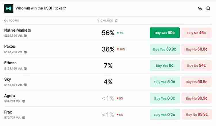 消息一出,业内多家加密公司纷纷提交提案拟支持HyperLiquid稳定币USDH,USDH稳定币发行权竞争愈发激烈。甚至Polymarket上还推出了相关押注。