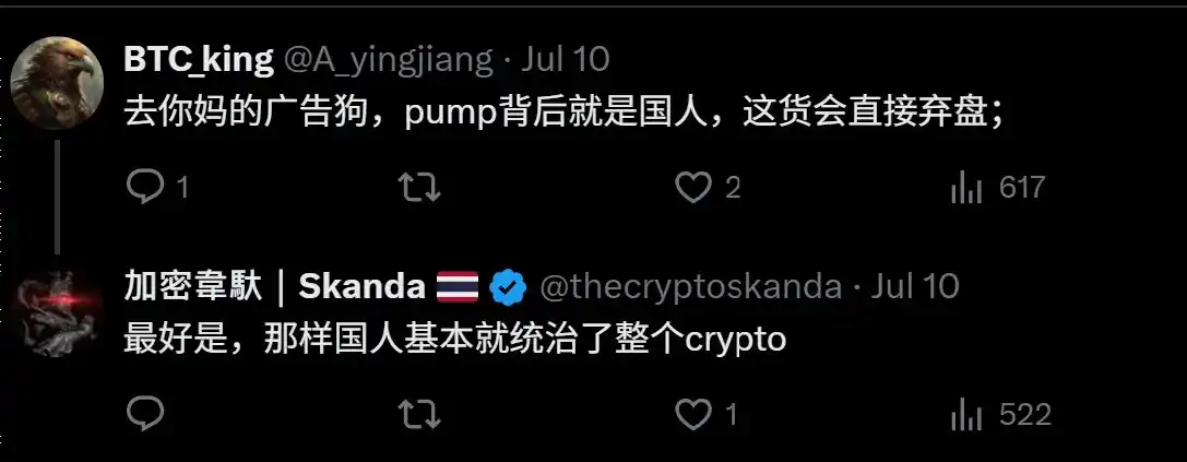 7 月顶着** fud 当 Pump 简中**大儒,被骂俩月,被上千人屏蔽。