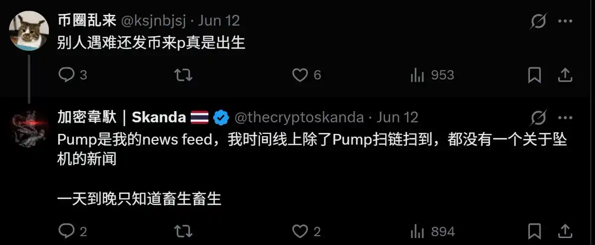 还有各种新闻币、政治币(甚至是所谓「死人币」),在其他平台甚至 Twitter 本身可能都会被和谐,更不可能变现。但是在 Pump Fun,都可以。