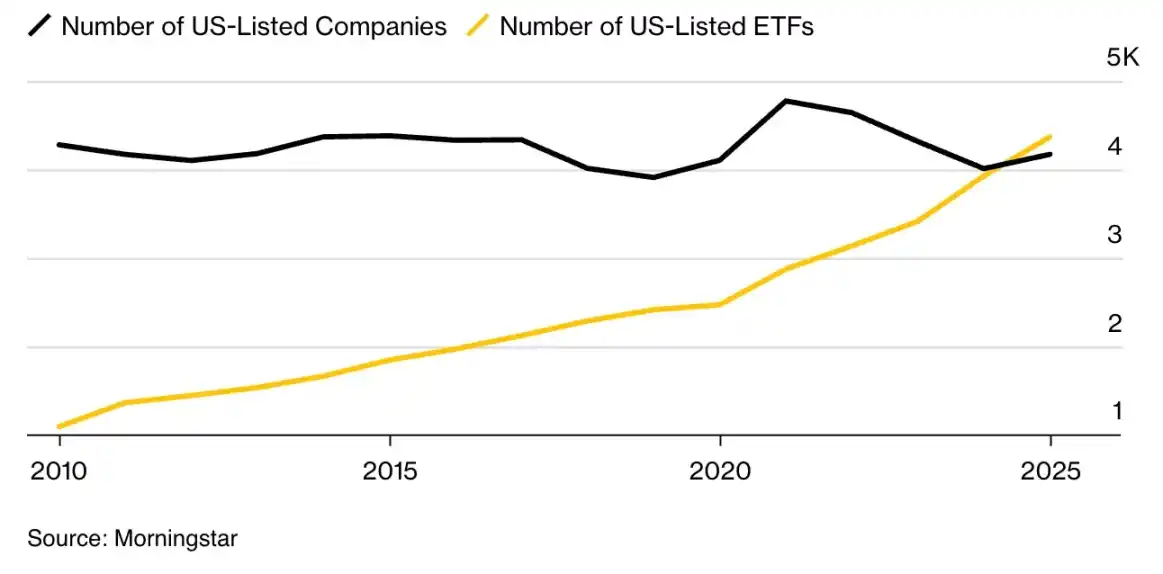我们已跨过「ETF 数量多于股票」的临界点,这是市场结构的根本性变化。我们本质上在「真实市场之上创造合成市场」,每一层都叠加了费用、复杂性与潜在的故障点。