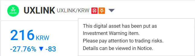 据官方公告,Upbit 将 UXLINK 列为交易警戒性**。UXLINK 的存款服务已暂停,存款服务的恢复时间将按照被指定为交易警示事项后的程序另行通知。