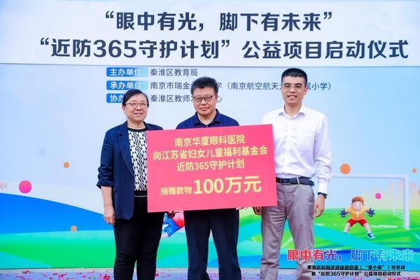 金秋时节,南京市瑞金北村小学的绿茵场上激荡着青春活力与公益温情。9月22日下午,首届秦淮区校园足球超级联赛收官战圆满落幕,由江苏省妇女儿童福利基金会发起的、南京华厦眼科医院爱心支持的“近防365守护计划”公益项目随即正式启动。江苏省妇女儿童福利基金会、南京市及秦淮区教育局相关领导,以及**眼科科学院院士赵堪兴教授领衔的专家团队、南京华厦眼科专家代表团、媒体代表共聚校园,以运动激扬成长活力,以专业守护视觉健康,共同为江苏儿童青少年眼健康事业按下“加速键”。
