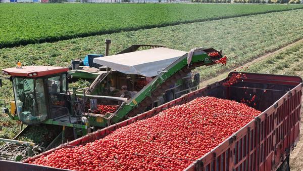 秋季丰收,新疆产区收获新鲜番茄