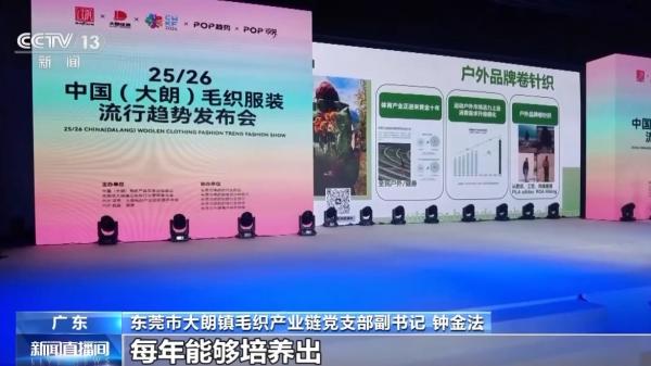 东莞市大朗镇毛织产业链党支部副书记 钟金法:经过十多年的发展,大朗毛织已经有研发以及工艺设计技术人员3000名,每年能够培养出设计方面的人才大概超过200人。