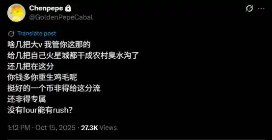 很快,另一名站位 OG「重生」币的 KOL Chenpepe 对这种「分流」的行为进行了抨击: