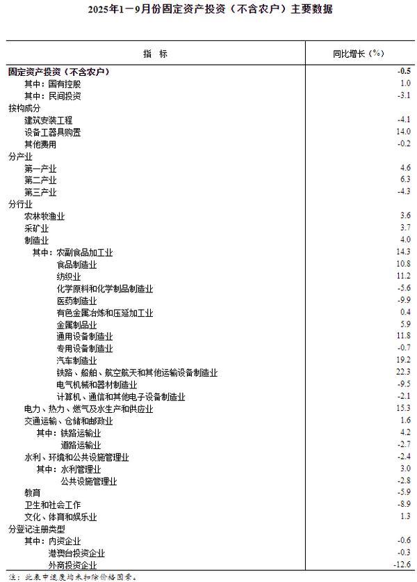 财经10月20日讯 据****网站消息,2025年1—9月份,**固定资产投资(不含农户371535亿元,同比下降0.5%(按可比口径计算,详见附注7。其中,民间固定资产投资同比下降3.1%。从环比看,9月份固定资产投资(不含农户下降0.07%。