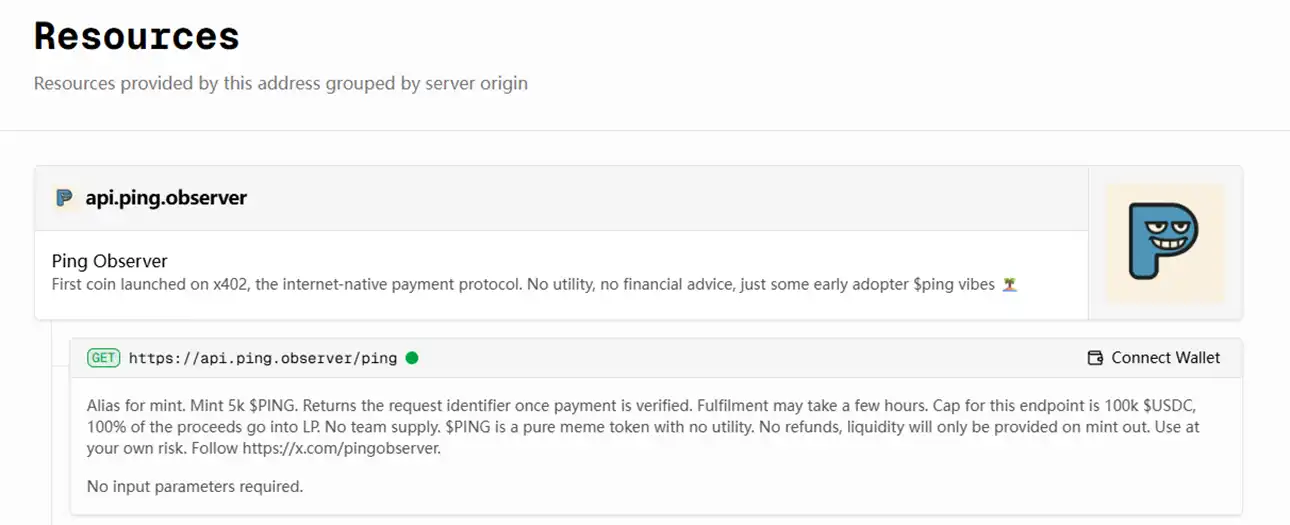 而工作流程也解释了为什么 $PING 的铸造过程会像铭文,因为它需要经过 x402 验证器的确认。在铸造过程中,大量的铸造请求不仅把铸造接口一次又一次地干爆,也是**次给 x402 协议来了场实打实的压力测试。