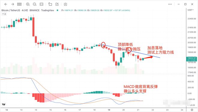 纳斯达克爆出将托管数字资产,对BTC起到撑盘作用。BTC回抽5日线,夜间加息落地之后,有望形成插针反弹,上方19132美元是阻力线关键点,小顶点不断**,面临阻力抛压,一旦快速拉升,打破阻力关口,BTC会进一步冲高走强,小时线做底背离反弹,接下来BTC上涨测试19132美元。