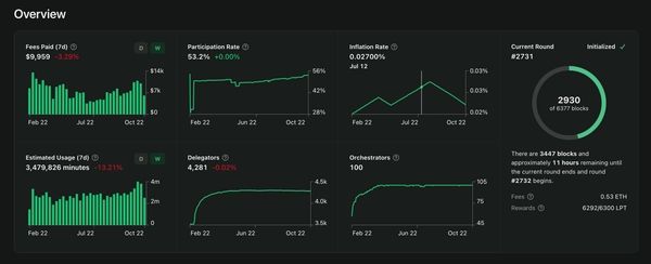 Livepeer 每轮都会发行新的**。轮次以以太坊区块为单位,一轮相当于 5,760 个以太坊区块。由于以太坊平均每 14 秒挖出一个区块,因此 Livepeer 的一轮 大约持续 22.4 小时。假设您质押的协调器性能良好,您应该会以此**收到奖励**。
