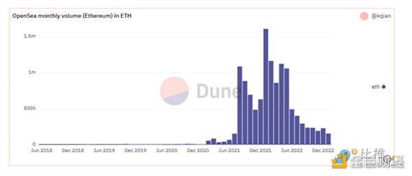Opensea 每月 ETH 交易量(来源:Dune)
