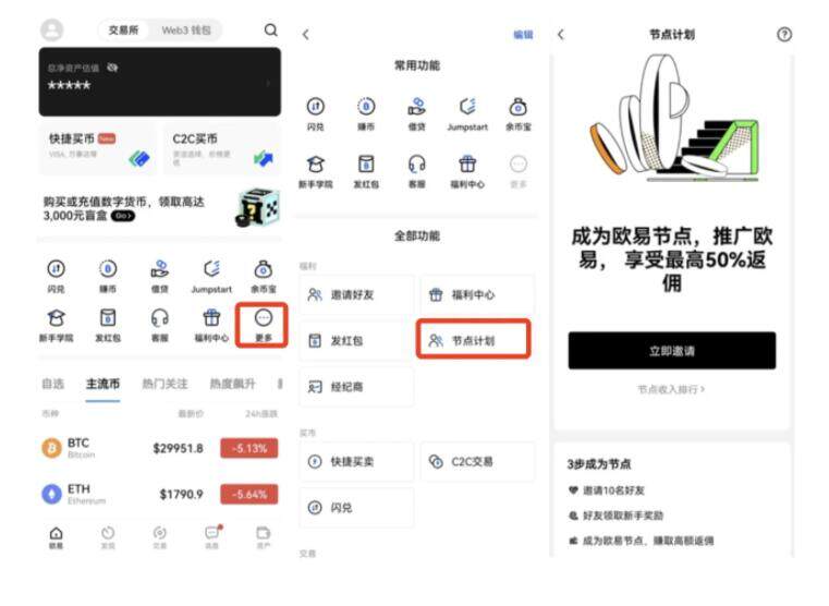 登录欧意APP,在首页点击【更多】-【节点计划】,在新页面点击【立即邀请】,将海报保存并分享给好友。