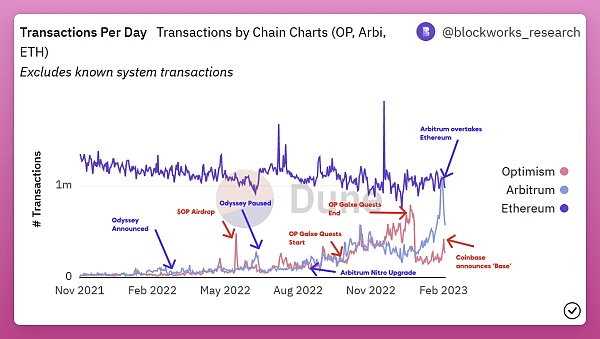 L2 竞争的未来,是更快速和更便宜Optimi** 和 Arbitrum 都是非常有前途的 L2,它们已经在未来的“模块化以太坊”叙事中发挥重要作用。虽然他们在日常交易方面仍然落后于以太坊主网,但更快、更便宜的交易使他们成为对用户有吸引力的选择。