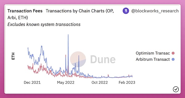 由于 Arbitrum 的技术升级,即使交易量有所增加,Gas 费用自去年以来也下降了 50%。