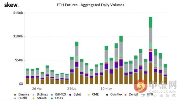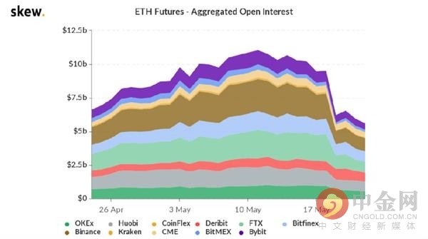 由于以太坊杠杆率过高,以太坊价格因多头而暴跌。但根据上图,自2021年5月19日以来,ETH期货累计日交易量不足700亿美元。由于交易量继续低于5月19日创下的峰值,正如环比指标所显示的那样,复苏可能正在进行中。