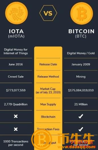 IOTA可以被视为比特币区块链的升级版。IOTA的创始思想是建立一个更分散、更快速的处理技术平台。但是目前IOTA并没有达到这个目标,平台已经有了很大的提升空。比特币区块链仍然是数字货币的主要代表。