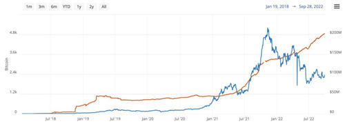 时间再拉长一些,根据《Bitcoinvisuals》数据,比特币闪电网路锁定的BTC相较于去年9月底时的3,000枚,在1年内增幅已超过六成。