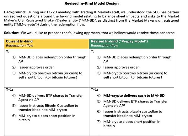 11 月底,美 SEC 与灰度、贝莱德和 HashDEX、Bitwise、VanEck、Fidelity 和 Invesco 等 8 家机构就各自的比特币现货 ETF 申请进行了会面。而在 11 月 30 日,贝莱德在同 SEC 交易与市场部门会面时,还向他们展示了「修订后的」比特币 ETF 现货实物模型设计,新模型中,离岸实体做市商从 Coinbase 获得比特币,然后以现金预付给美国注册的经纪交易商。