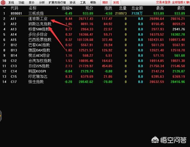 通达信软件上怎么看美元指数,道琼斯指数,纳斯达克指数?