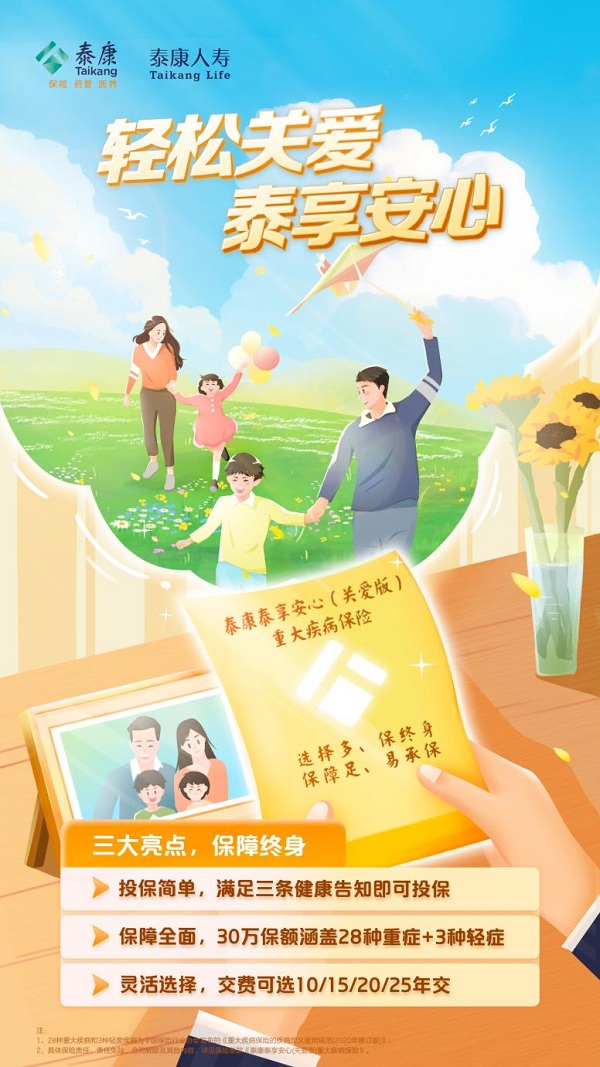 泰享安心(关爱版):健康告知简单,终身保障更安心!