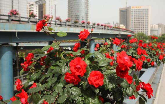 据悉近年来,南昌市园林景观在绿量上有了很大程度的提升,但色彩度还不够丰富,季相变化少,“绿化有余、彩化不足”的问题逐渐凸显。为此,南昌市持续推进城市道路绿化彩化建设,提升景观品质。其中,在主干道路、立交桥等处种植了数百万株月季,精心设计栽植不同的品种,既有树状、丛状、球状等不同造型,又有红色、黄色、粉色等不同颜色,营造丰富立体的视觉效果,使原本清一色的绿化植物在月季花的点缀下,富有层次感,呈现立体化效果,吸引了许多市民游客驻足观赏、拍照打卡。