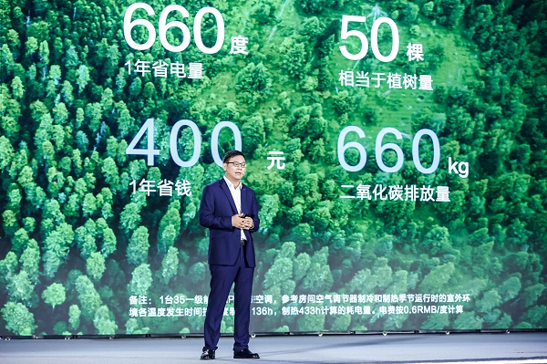 陈绍林在发布会指出,新风空调作为新一代空调,新风功能是最基本属性,同时必须具备解决三大挑战的属性和功能。因此,定义新一代空调应该包含“智慧健康”、“节能环保”和“AI智能”三个要素。