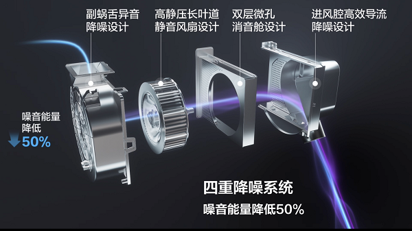 TCL空调的工程师团队对整个风道流路做了技术创新优化,在进气腔,采用创新的双路导流设计,通过仿真找到一个**的进气入流角,让空气流动的更顺畅,可以减少空气和风道腔体的碰撞;同时我们增加了双层多孔吸音舱,声音的能量在这些细微的孔中不断地反射衰减耗散,以达到用户对声舒适的要求,噪音能量**50%。