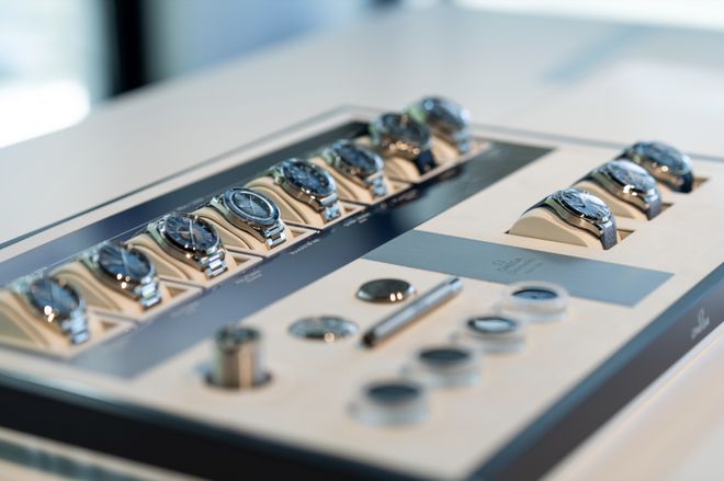 正如其名,这枚腕表的防水深度为300米,因此其Summer Blue表盘采用更深的色调,以呼应腕表更高的防水深度。