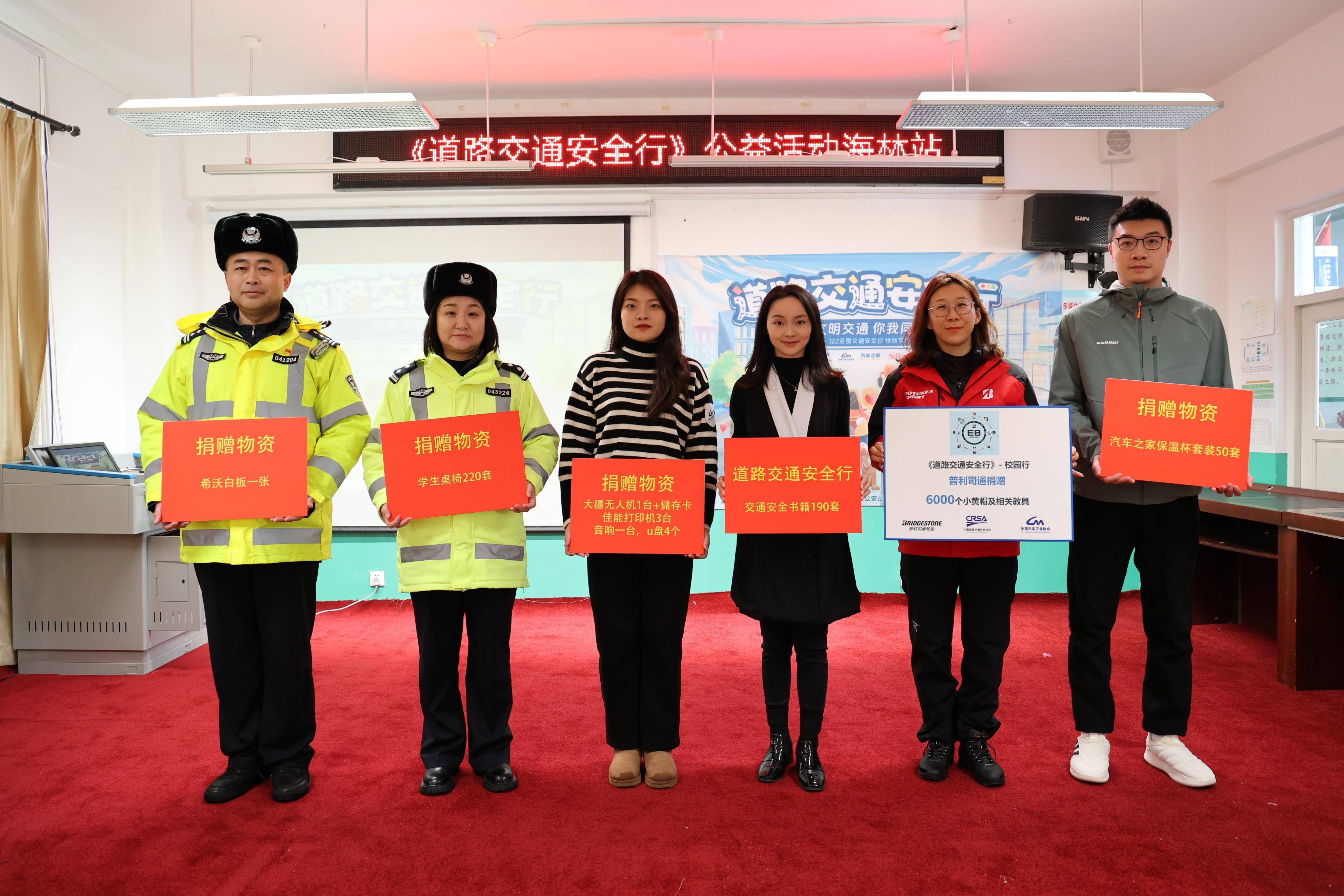 近日,由**道路交通安全协会、**汽车工业协会、**青年报、汽车之家主办,黑龙江省牡丹江市**局交通警察支队、海林市**局交通警察大队、普利司通(**)投资有限公司支持的《道路交通安全行》进校园公益活动,在黑龙江省牡丹江海林市三道河子镇**学校举办。现场开展了“交通安全知识大讲堂”“盲区、开门杀、冰雪路面出行安全互动游戏”“书籍及学习物品捐赠”等活动,旨在精准传播道路交通安全知识,提升少年儿童群体安全出行意识,进一步强化少年儿童群体的“知危险,会避险”能力。