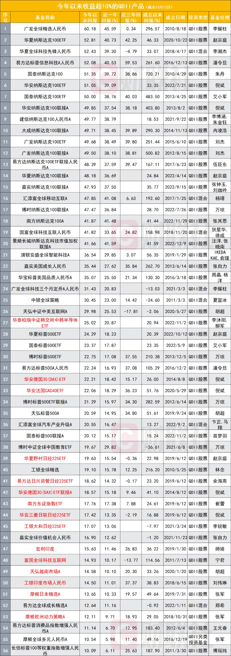 业绩冠军提前锁定?有QDII收益超60%已是“冠军相” 当前仅6只主动权益基金收益超40%