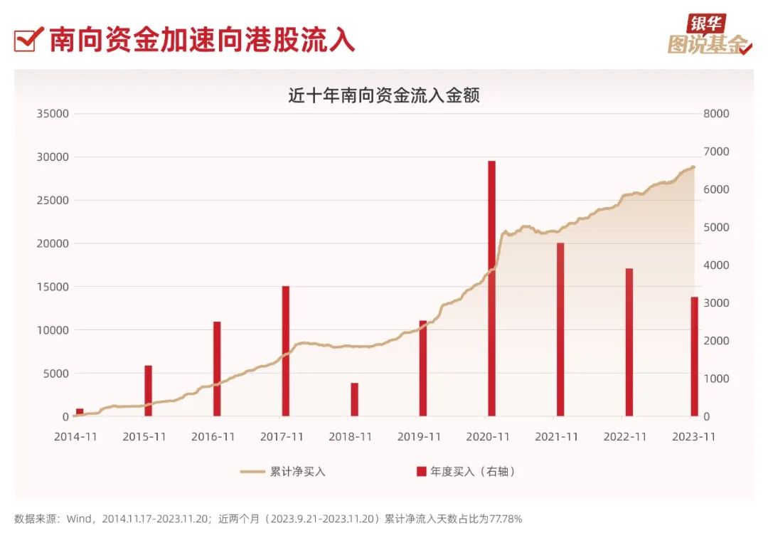 4、港股反弹行情与资金面变化也息息相关。近期南向资金展现出“跑步”入场的迹象,资金蓄水池“入多”、“出少”趋势逐渐显露。今年以来南向资金合计净流入超3000亿港元,已成为港股市场重要的资金来源之一。