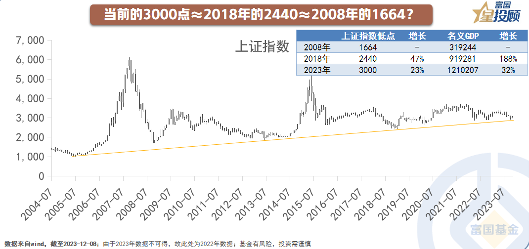 从长期维度来看,A股底部是在不断提升的,背后是经济持续增长和企业发展壮大,这是3000点支撑越来越强的核心因素。