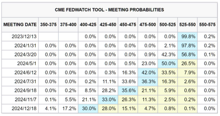 CME利率期货显示,市场认为美联储加息结束概率超过99%