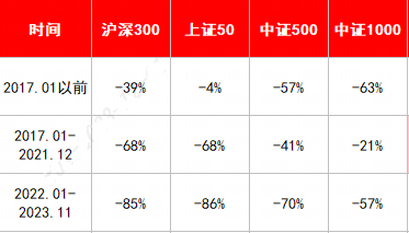 注:沪深300自2002年开始,上证50自2004年开始,中证500、中证1000自2005年开始