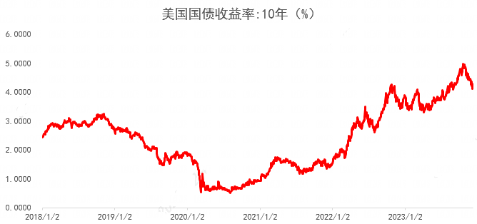 2018年以来10年美债收益率20180102-20231208
