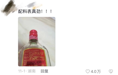“劲酒好不好,看看配料表”“不是洋酒喝不起,而是劲酒更有性价比”“这泼天的富贵,终于轮到劲酒了”……好玩的梗越多,对劲酒跃跃欲试的人就更多。