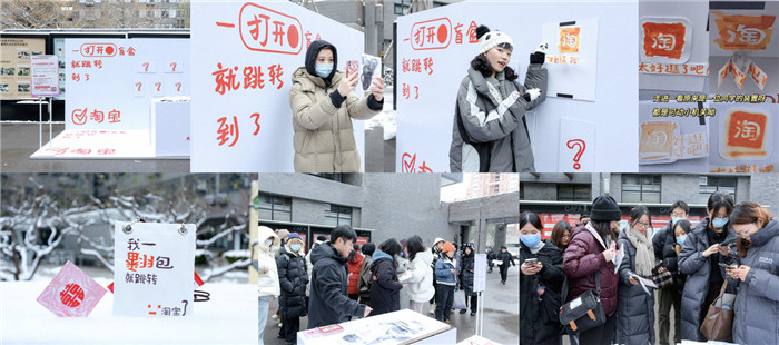 从广美书法系的许愿树装置、清华大学的答案之书装置、川音条条大路通淘宝任意门装置、央美艺术盲盒装置再到东华大学飞到淘宝装置,这些线下落地装置形态各异,极具创意,不仅将淘宝的“好玩好逛”呈现的淋漓尽致,这些玩梗创作很好的撬动了路人盘,引发了自媒体的跟进关注。