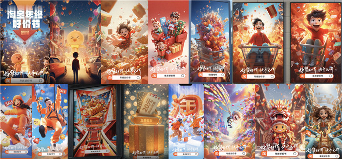 不止如此,AI创作还能**提升效率,这一次淘宝年终好价节,就借助AI的力量把众创玩出了花。